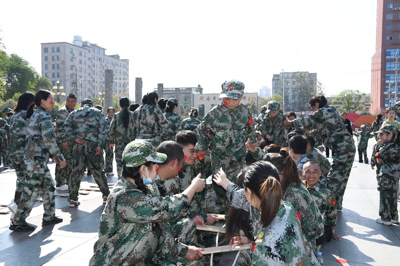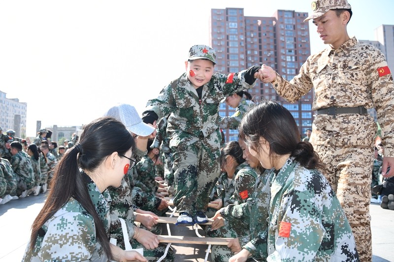 军营拉歌环节,新老士兵席地而坐,随着教官的指挥,充满气势的拉歌口号此起彼伏,现场的气氛变得紧张起来——你方唱罢我登场,一首首充满激情的爱国歌曲响彻整个运动场。教师舞蹈为本次活动增添了更多的色彩,女老师们身着迷彩服,表演了一段富有军旅特色舞蹈,展现了她们坚韧与柔美并存的风格。