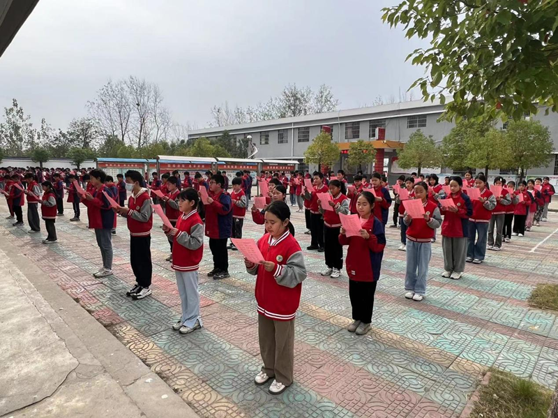 本网讯(王青玲)为进一步丰富校园文化生活,营造浓厚的书香校园氛围,借以传承国学文化经典,弘扬民族文化精髓,激发学生的读书和诵读热情,2023年10月25日上午,潢川县来龙中心校开展国学经典诵读活动。中心校党支部书记、校长刘伟,中心小学校长宋同贤、副校长陈岭出席活动。