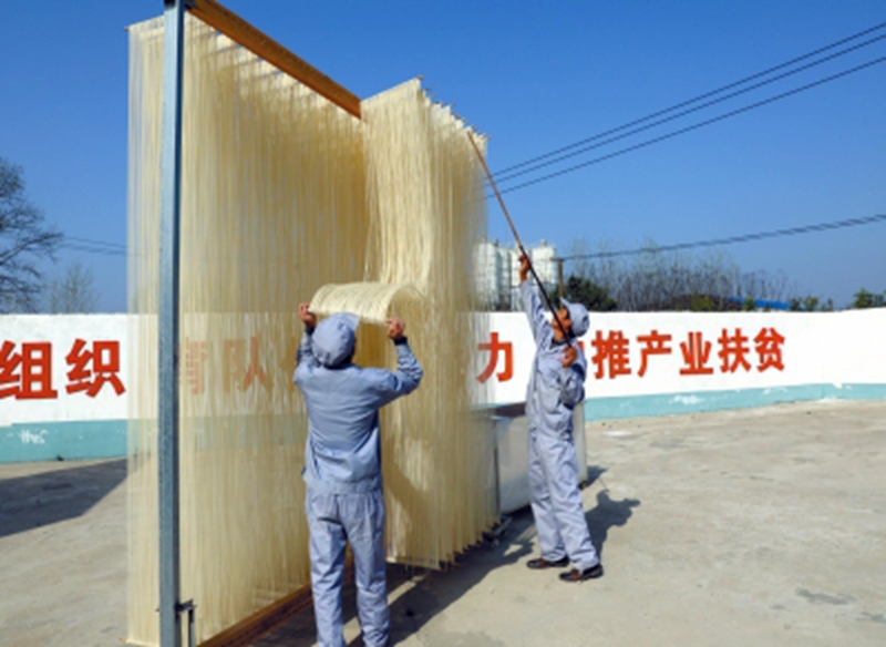 近年来,潢川县委、县政府高度重视潢川空心贡面产业的传承与发展,围绕“保护一个产品、制定一项标准、完善一个体系、做强一批企业”的地理标志产品保护发展规划,于2013年3月成立了潢川空心贡面产业发展领导小组。该县建立了以付店镇旺鑫食品有限公司为主的潢川空心贡面生产与传承基地,大力推行“公司+合作社+基地+农户”的生产经营模式,对入社成员生产条件进行改造,实行原料统一供应,生产统一标准,产品统一回收,质价分级管理;在保持传统技艺的同时,购置配套烘干设备设施,提高工业化生产;制定了《地理标志产品潢川空心贡面地方标准》,由传统、粗放型向现代化、精细化的加工业发展,逐步形成了一个较完整的产业链,辐射潢川周边,带动1.2万户农户脱贫致富,有力推动了潢川空心贡面规模化、集约化、专业化和市场化生产。