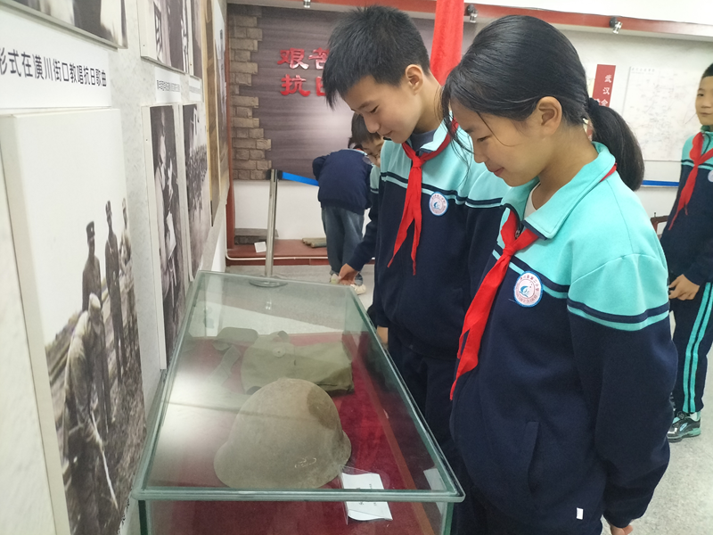 紧接着,讲解员带着孩子们认真参观了抗日战争纪念馆,学习了党的光辉历程,着重讲解了潢川县在抗战时期的突出贡献和为抗战胜利做出牺牲的民族英雄和革命先驱的光辉事迹。1938年1月,从徐州迁来的“第五战区抗敌青年军团”在望河楼成立,这里成为宣传抗日、培养抗日有生力量的重要活动场所。一颗颗来自潢川的抗日种子,在全国各地生根发芽。以至当时就有“北伐黄埔,抗战潢川”之美誉。在当时的青年学生心目中,潢川,就是抗战中的胜地。