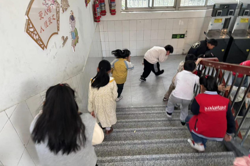 上午9点40分, 伴随着第一声避险警报响起,防震演练正式开始。各班学生立刻停止学习活动,在教师的组织下,双手抱头、降低重心,迅速到就近的墙角、桌下或支撑结构较多的安全区域进行紧急避险,等待广播的指示,为安全疏散做好准备。随着第二声警报响起,学生在教师们的带领下弯腰、护头、有序地沿着预定的逃生路线,快速撤离到安全空旷的操场上。到达安全区域后,各班教师迅速清点人数,安抚学生情绪,并及时向总指挥汇报撤离情况,确保每一位学生的安全。