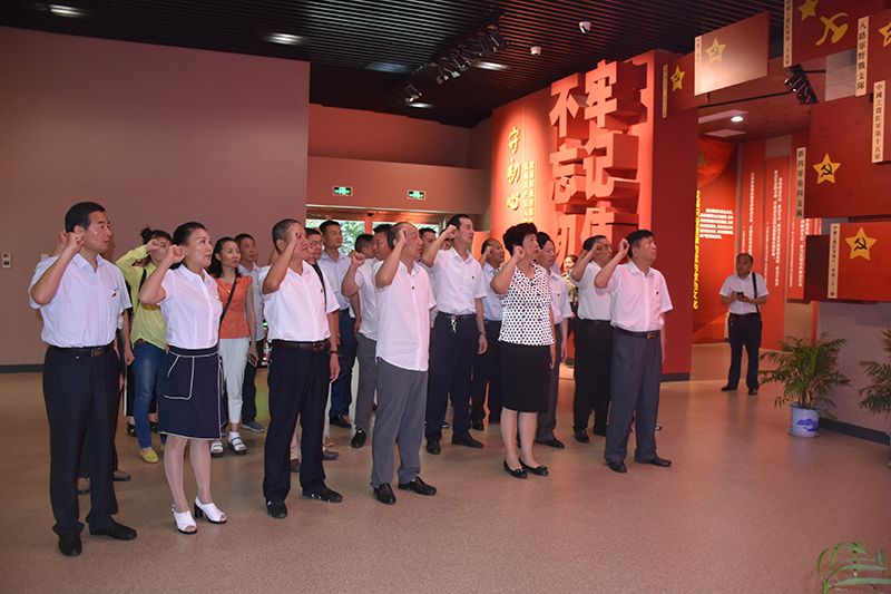参加活动的全体党员干部在县政协主席涂白亮的带领下,认真参观“悟初心、守初心、践初心”三大主题展厅,回顾红色历史、领会红色精神、传承红色基因,聆听革命先辈英雄事迹,学习大别山革命精神,弘扬共产党人优良传统。面对鲜红的党旗,大家高举右手,重温入党誓词,坚定理想信念,激励奋斗精神。