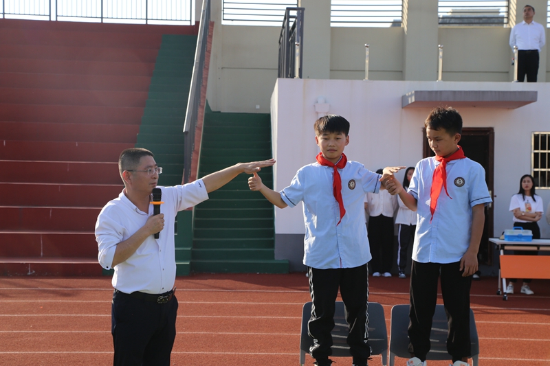 党支部书记、校长雷后现宣布“我阳光 我快乐 我健康”潢川三小心理健康教育系列活动开始。