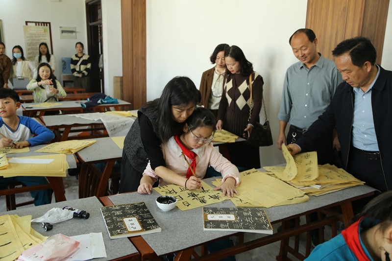 11月3日上午,县教师进修学校任灏宇科长带领兄弟学校20余位校长,在雷后现及全体校级领导的陪同下,聆听解说员韩沐端老师对校园文化的介绍,漫步在环境优雅的三小校园,参观了设备齐全的各个功能室,走进了教室走廊,在朗朗书声中感受三小课堂的活力和学生们的专注学习。走进了让孩子们魅力绽放的艺术楼,参观了潢川三小舞蹈、合唱、书法、美术、电子琴等五彩缤纷的社团活动,感受双减政策下,学校为三小学子搭建的个性发展舞台。深入学校食堂、厨房,听取食堂负责人的详细介绍,来到党支部办公室查阅党建档案资料,了解潢川三小党建工作。充满活力的高颜值校园,积极进取的团队管理,得到来宾们的高度称赞。