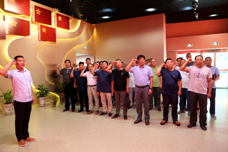 在讲解员的带领下,全体人员参观了悟初心、守初心、践初心三个展厅。通过凝听讲解,对应实物和图片再一次见证了革命先烈的丰功伟绩,进一步了解了鄂豫皖革命根据地形成、发展和不断壮大的历史。在纪念馆内,面对鲜红的党旗,李铮书记带领全体党员举起右拳,庄严宣誓,重温自己对党忠诚的誓言,再一次接受了心灵的洗涤和党性教育。