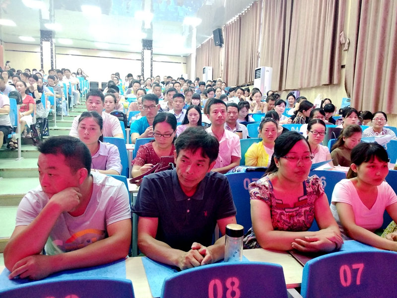 随后,师训科科长任灏宇对培训班的班务工作做出了具体的安排,并提出了严格的要求。他要求大家一定要遵守培训时间,在确保交通、财产和饮食安全的同时,细致研修、认真思考,充分利用短暂的学习时间,争取得到最大的收获。开班典礼结束后,潢川幼儿师范学校高级讲师程远光为参训老师带来了开篇讲座《中小学心理健康教育》。程老师指出,课堂教学不仅是科学知识传授的过程,也是学生心理发展的过程。在各学科教学过程中渗透有关的知识,能够使学生处处都感受到真、善、美的教育。连日来的持续的高温酷暑并未影响到老师们的学习热情,培训班现场座无虚席,老师们对精彩的讲座不时报以热烈的掌声。