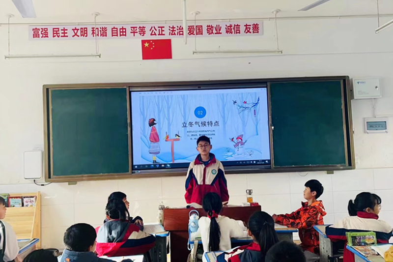 本网讯(黄萍)早久何当雨,秋深渐入冬。立冬,是二十四节气中的第十九个节气,是冬天的第一个节气,表示冬季的开始,立冬也是我国传统文化之一。为传承和发扬中华民族优秀传统文化,让同学们亲身体验和感受立冬节日习俗和节气特点,铸牢中华民族共同体意识,在立冬节气到来之际,潢川县弋阳小学组织开展立冬主题班会活动。
