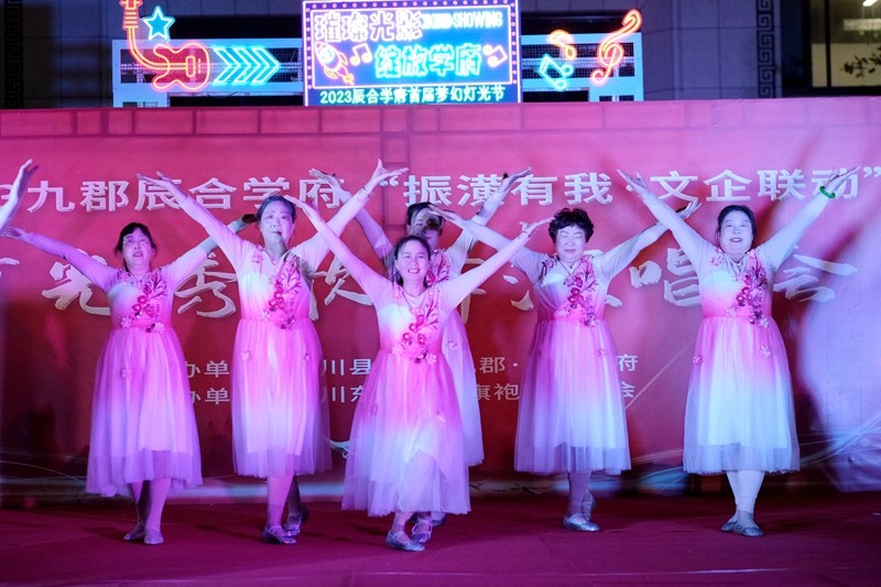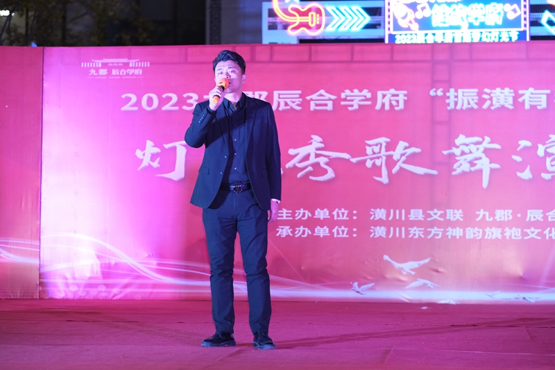 县文联党组成员、副主席王瑛琳在致词中指出,潢川九郡辰合学府是潢川文联包联的四上企业之一,为宣传贯彻党的二十大精神、深入落实县委、县政府打造最优营商环境的工作部署,县文联不断创新工作举措,以“文企联动”为平台,先后在这里组织开展了潢川、新县朗诵交流活动,促进了校企合作、梦幻灯光摆拍秀等活动。今晚举办灯光秀歌舞演唱会,是深化文企合作,丰富群众精神文化生活,优化营商环境的有力宣传,也是传承艺术经典,弘扬光州文化,展现潢川人民一心向党、热爱生活、团结奋进的形象展示,希望通过此次活动,持续掀起文艺界宣企助企热潮,带动广大人民群众优化营商环境齐参与,广泛汇聚“振潢有我”强大合力,共同谱写潢川高质量发展新答卷。