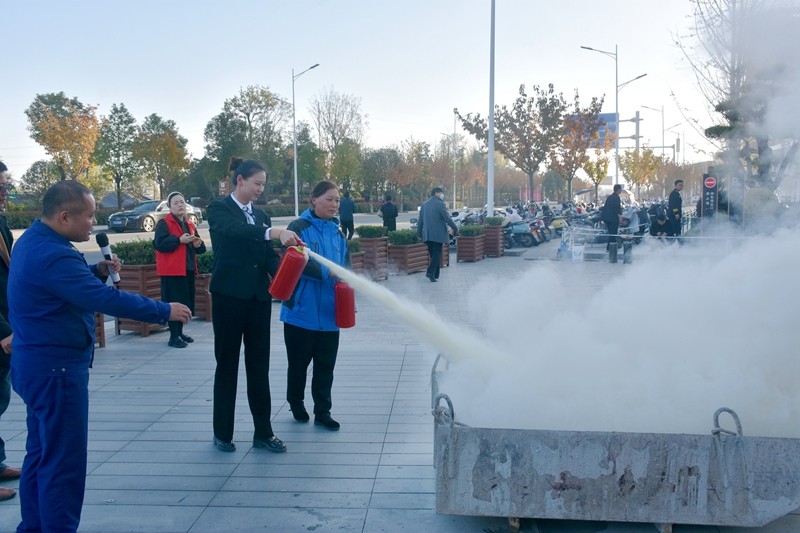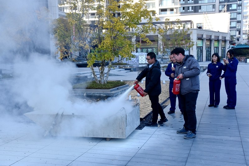 活动中,消防员对物业人员及小区群众进行了深入的消防安全知识培训,详细讲解了灭火器的正确使用方法。随后,物业人员亲自动手操作灭火器,进行实操演练。他们按照消防员所教授的方法,迅速、准确地使用灭火器将火源扑灭。