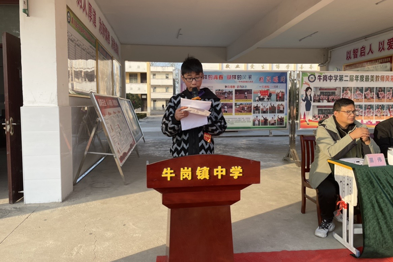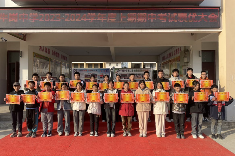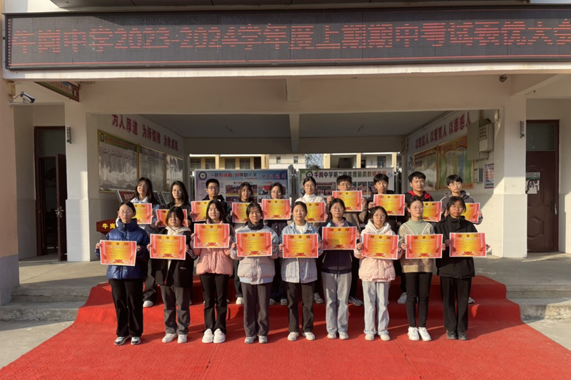 本网讯(宋博正)斗转星移,光阴似箭。这一学期已走过了一半的路程,辛勤汗水,换来丰硕成果。经过学校严谨有序的组织,全体师生的共同努力,本学期期中考试已经圆满结束。为了鼓励先进、鼓舞斗志,七、八、九年级学生欢聚一堂,牛岗中学于11月24日下午隆重召开“期中考试表彰大会”。全体师生和部分优秀学生家长参加,会议由安全副校长朱天峰主持。