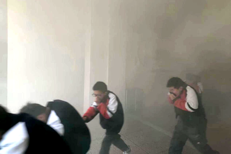 在演练过程中,随着警报的响起,各位老师立即到达指定岗位,班主任迅速到班级指导学生有序撤离到学校操场的安全地带,随即各班主任清点人数,并逐级向上汇报,确保不漏掉每一名学生。