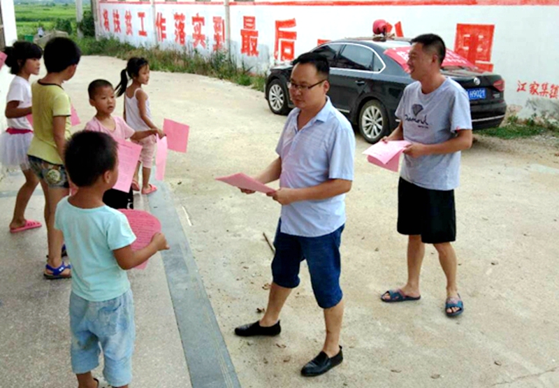 走访入户发放防溺水知识宣传单