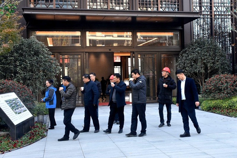 在春晖上和府,专家组详细了解了项目的整体规划、施工进度、工程质量和公司的经营管理情况。他们深入交付样板间,欣赏了项目的高品质建筑和细致入微的小区配置。同时,专家组还就项目的进一步优化升级提出了宝贵的意见和建议。