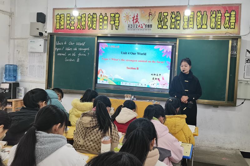 上午,在双柳高中校长黄昌兵的陪同下,各位领导和教师观摩了双柳高中八年级教师蔡新悦的英语课《Unit 4 Our World Topic 1 What’s the strongest animal on the farm ? Section B》,课后在双柳高中敬德楼会议室举行了八年级英语专题研讨会。