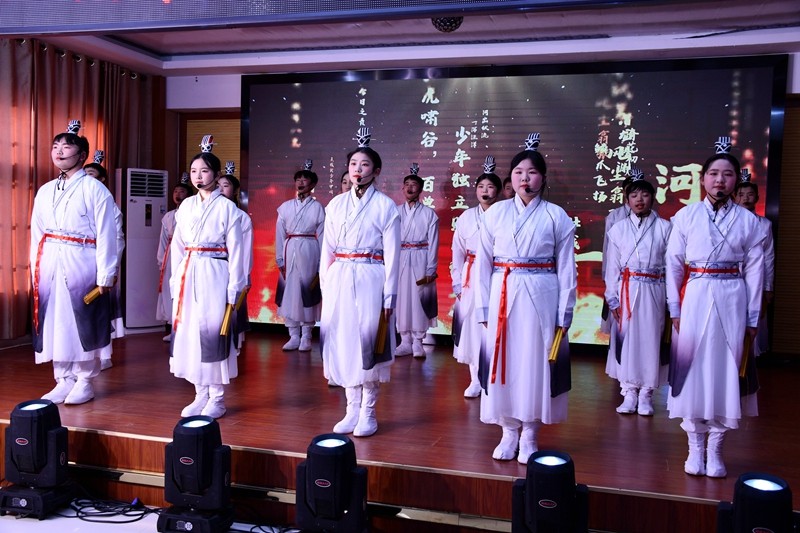 随后,《听雨》《小潢河序曲》《英雄》《我的家乡·我的城》《潢川▪镶在潢河流域的璀璨与诗吟》《百合花开》《少年中国说》《大地之上》《梦向远方》等节目相继上演。这些节目以诗歌朗诵、舞蹈、唱诵、表演诵等多种形式呈现,展现了协会会员和师生们深厚的文化底蕴和艺术才华。