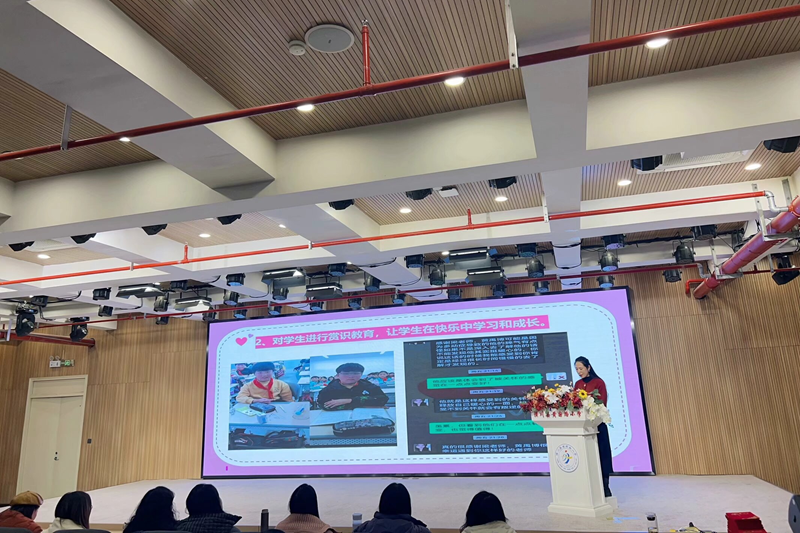 随后,张友琴老师作点评。她对各选手的表现进行了细致的点评和指导。她从自身感受和体验出发,勉励大家认真反思总结,在实践中积累方法,将日常做法融入到带班理念中去,发挥特长,不断创新。并给出选手主、副标题的设计、舞台表现力的建议。
