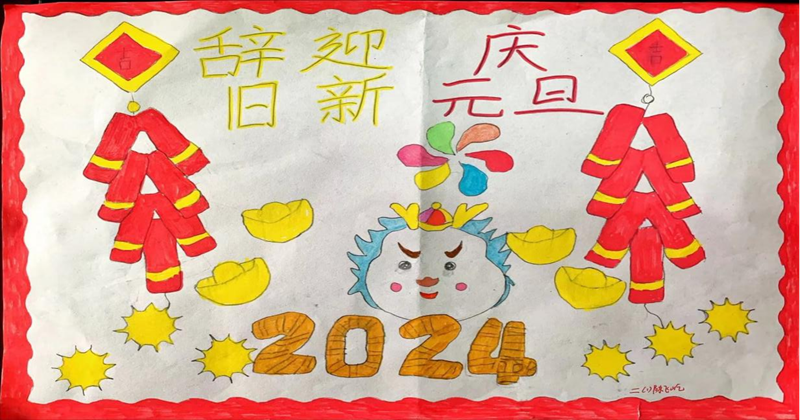 活动中,稚嫩的画笔描绘出了学生对新年的期盼和祝福,一道道鲜艳的色彩,彰显出学生对新年到来的喜悦之情。