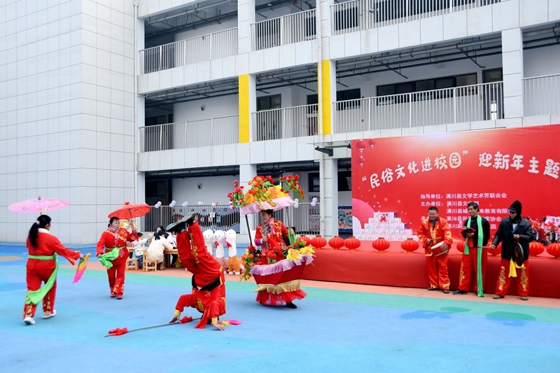 随后,老师们带来了舞蹈《张灯结彩》,舞姿优美,欢快热烈,为现场观众带来了一场视觉盛宴。同时,《锣鼓十八番》和《旱船》等传统民间艺术表演也引起了现场观众的阵阵掌声。