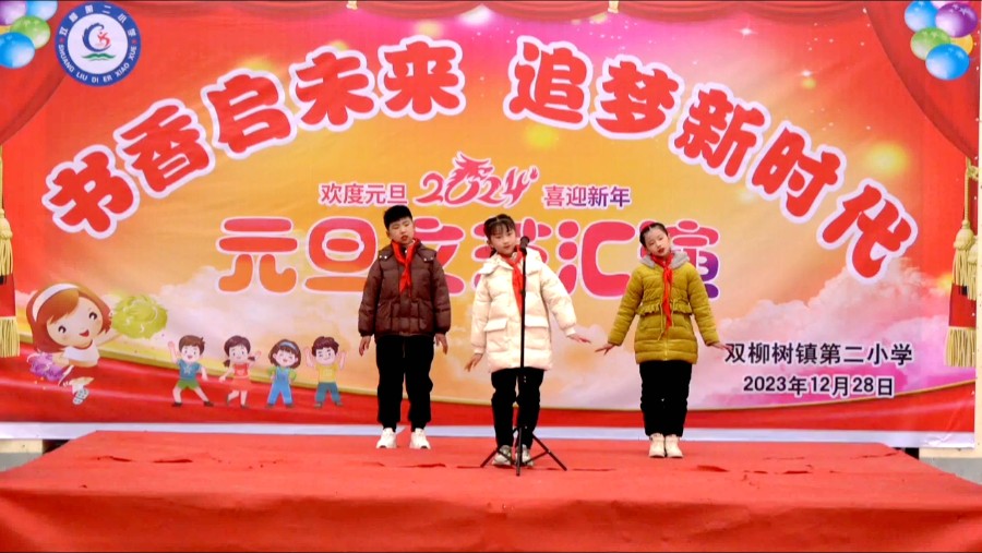 每一年的庆元旦迎新春文艺汇演是全校师生自编自演自娱自乐的一场盛宴,是孩子们全面发展的一次展示,更是双柳二小坚持“让学生得到全面发展”的教学理念,注重培养学生德智体美劳的积极举措。本次文艺汇演,充分展示了学生的艺术才华和创新精神,营造了文明健康、积极向上的校园文化氛围,促进了校园文化建设健康发展,展现了师生们喜迎新年的豪迈激情和积极向上的精神风貌。