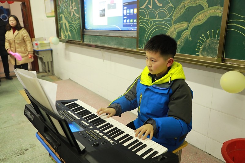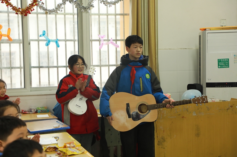 新年的小小舞台,注定是孩子们的主场。在活动中,学生们积极参与,各展所长,有的唱歌、有的跳舞、有的表演小品,还有乐器展示,在新旧交替的元旦佳节与同窗好友结队成群,舞动涟漪,现场氛围十分热烈。此外,教师们还精心设计了各种游戏环节,如“击鼓传花”、“抢凳子”等,让学生们在游戏中感受到快乐和挑战。教室传出阵阵笑声,喝彩声让校园成为欢乐的海洋!
