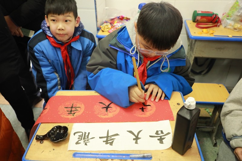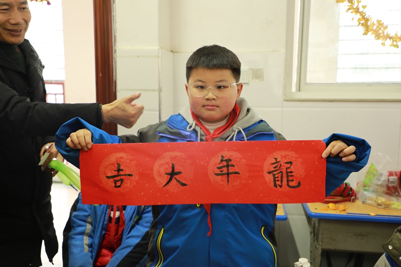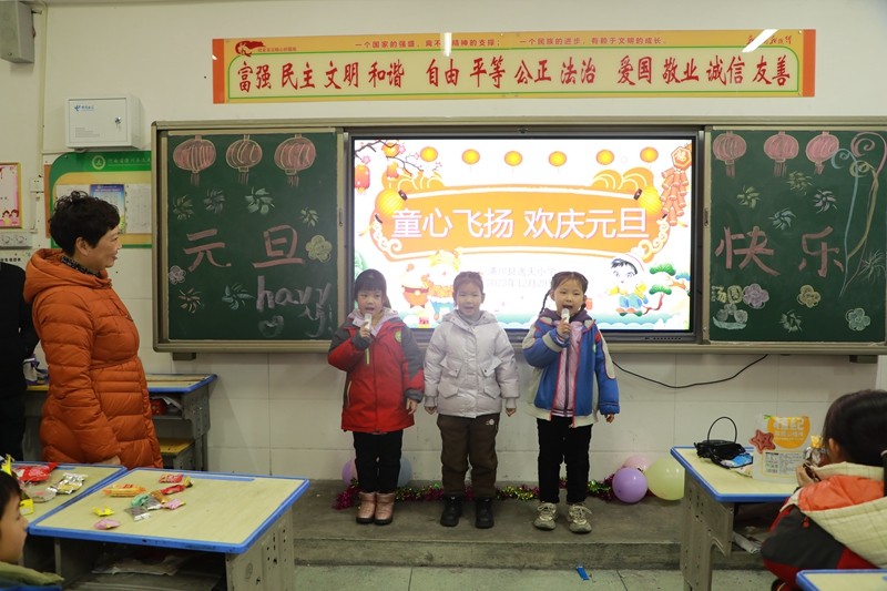 为了让孩子们过一个难忘的节日,各班教师带领学生利用课余时间布置教室,充分放手让学生构思安排。学生集思广益,发挥聪明才智,贴窗花、扎气球、写书法、挂彩带、摆桌椅,孩子们将班级布置得张灯结彩、喜气洋洋,处处显示出迎新年的欢乐。