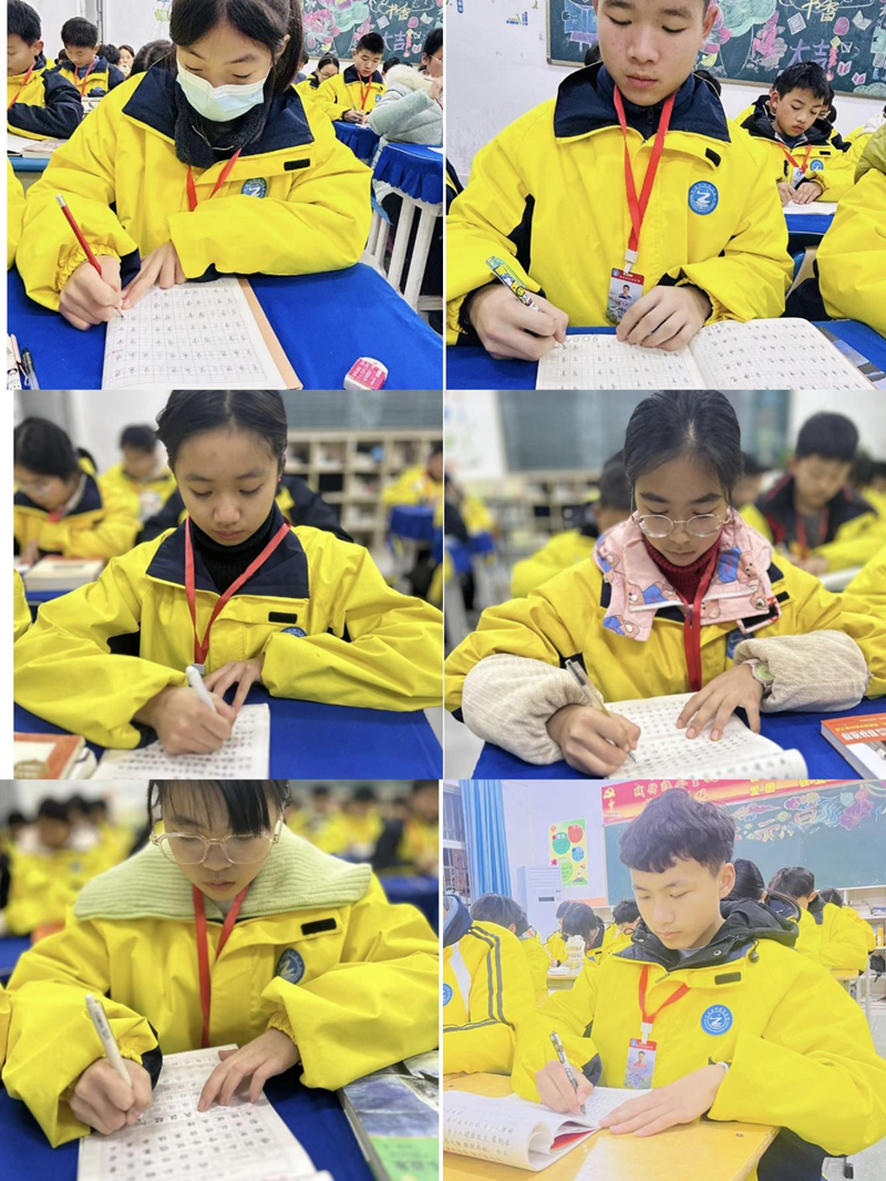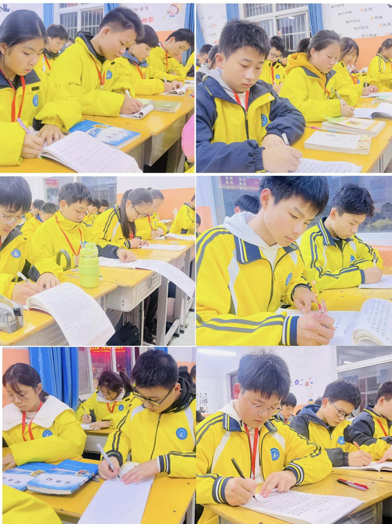 七、八年级本期开设阅读课和利用每晚第一节夜自习开展经典诵读和规范书写教学活动。每位教师都能倾尽所有,细心、耐心、热心的为同学们做好引导,而同学们也是投入其中,聚精会神、全神贯注,经过教师和学生长时间以来的双向奔赴,这项教学活动取得一定的效果。每晚第一节夜自习,教学楼里回荡着诵读声,教师和同学们饱含情感,一起沉浸在经典文章的悦读中。十二月份学校组织的硬笔书法大赛,多位同学的字写地气势磅礴、隽永有劲。一字见心、心正笔正,我们表面上看到的是他们一个个力透纸背的汉字,而背后则是他们日复一日的坚持和努力,以及向好向善的决心。
