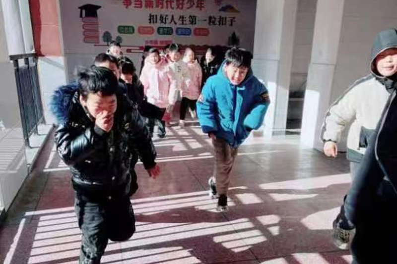 演练过程中,随着警报的响起,班级老师迅速组织学生疏散逃生。全体师生按照指定路线,低下身体,用湿毛巾、衣袖等捂住口鼻迅速有序地进行紧急疏散至安全区域,抱头蹲下。各班班主任清点人数,师生全部安全疏散完毕。