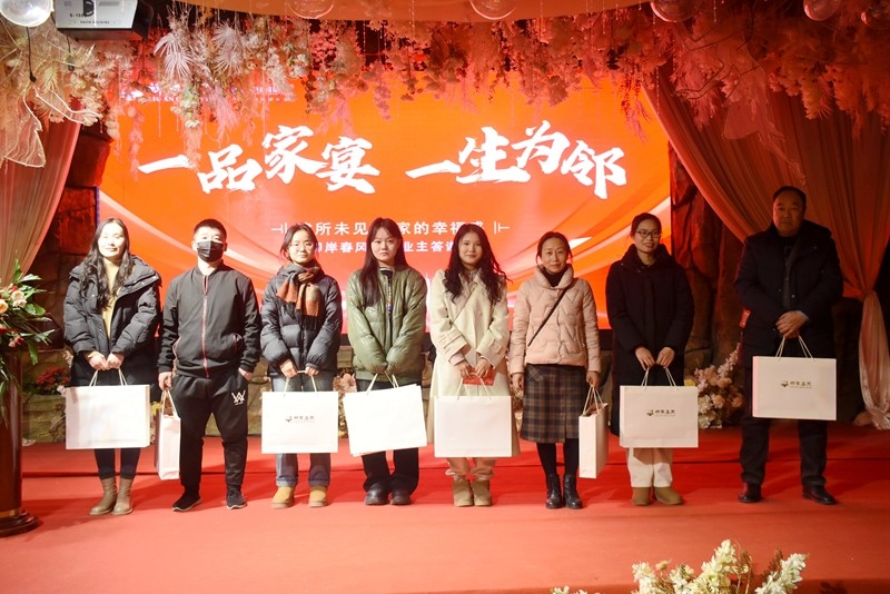随后,柳岸春风项目三位股东一同上台,为业主朋友们送上新年祝福,祝愿所有的业主在新的一年里身体健康、事业顺利、家庭幸福,同时也希望柳岸春风项目能够继续保持高品质的发展态势,为业主创造更多的价值。