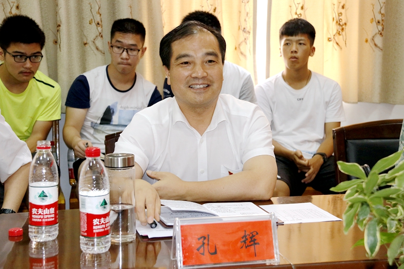 孔辉与清华大学“豫见河南”电商扶贫调研支队亲切交谈