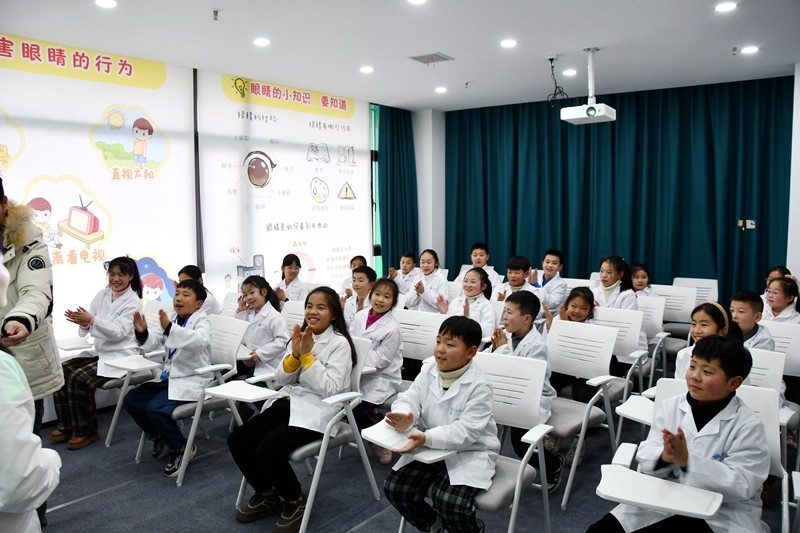 本网讯 2024年1月30日下午,河南广播电视台小记者俱乐部潢川中心的小记者们开展了一场意义非凡的采访实践之旅。来到潢川县青少年视力检测科普基地万新眼科,与眼科医生近距离接触,了解视力检测与保护的重要性。