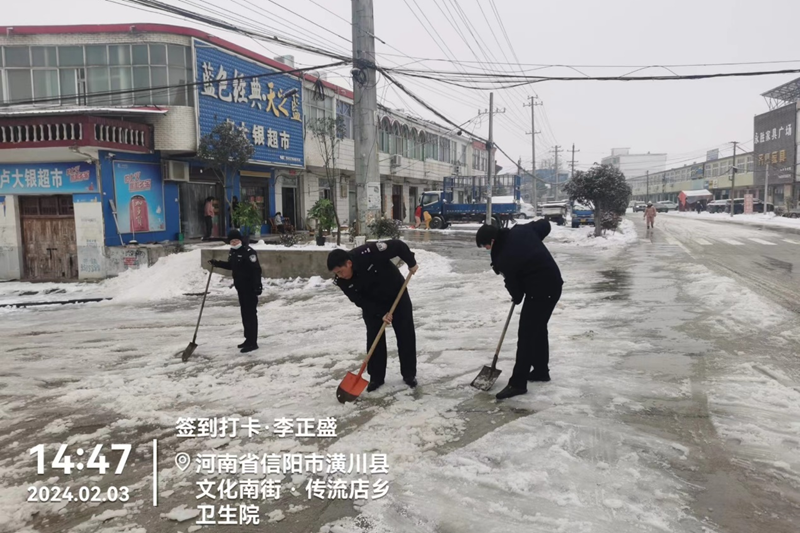 本网讯 年关将近,一场大雪为潢川县传流店乡披上了银装,但同时也给当地居民的出行带来了极大不便。为了尽快消除降雪带来的不利影响,保障居民的安全出行,2月3日,传流店乡的党员干部们齐心协力,积极投入到铲雪除冰的工作中。