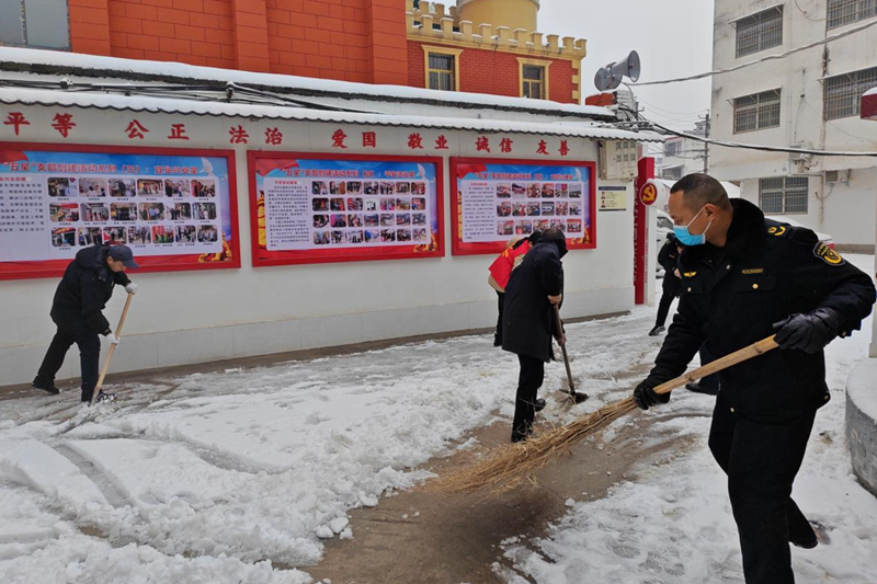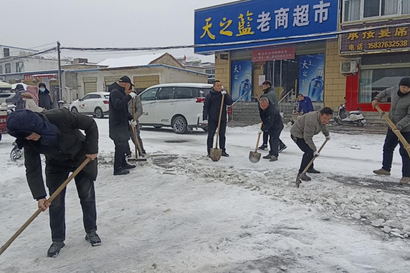 在扫雪现场,党员干部们分工明确、团结协作,充分发扬了不怕苦、不怕累的精神。他们用实际行动践行着“为人民服务”的初心和使命,让群众感受到了党的温暖和关怀。