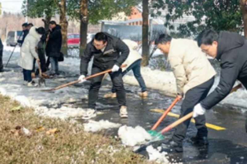 齐铲冰除雪迎开学 齐心扫出暖心路——潢川县黄冈实验学校全体教职工开学“大作战”