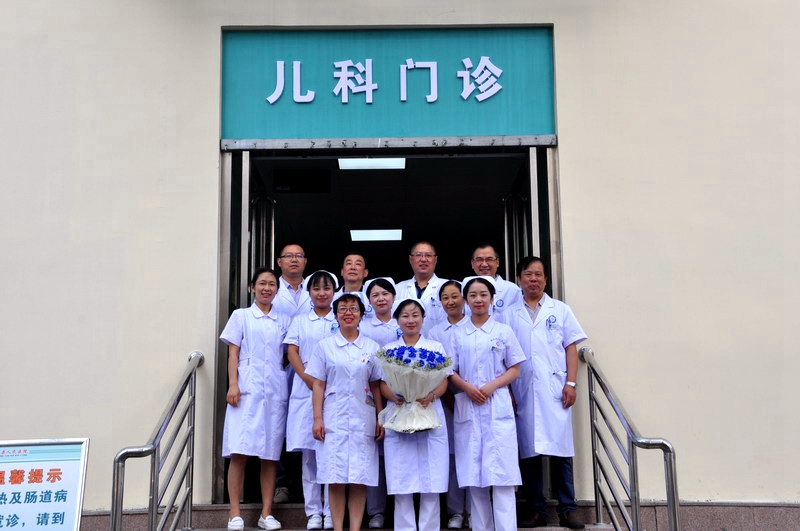 潢川县人民医院儿科门诊正式投入使用,院领导现场指导工作并与该科医生合影
