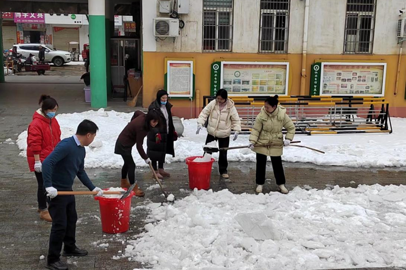 本网讯(朱晓帆) 开学在即,一场大雪悄然降临,银装素裹的美景给校园增添了独特的韵味,但积雪也给即将开学的师生们带来了安全隐患。为了确保师生安全和正常教学秩序,2024年2月26日和27日,潢川县逸夫小学积极响应上级号召,在校长周卫的带领下,全体教育工作者开展了校园铲雪除冰活动。