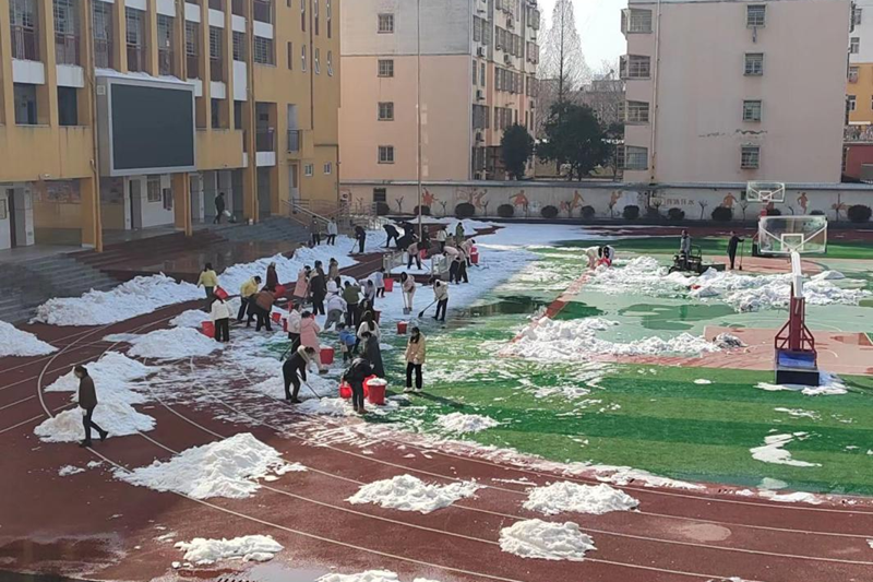 行动是最好的融雪剂,美丽校园吹响劳动的号角。虽然寒风凛冽,但校园里的“冰雪战士”干劲十足,他们与冰雪对抗依然“热辣滚烫”。大家团结配合,分工明确,认真地清扫主干道、校门口通道、教学楼前、后楼操场等冰雪。场面热火朝天,忙碌的身影活跃在校园各个角落。凝心聚力,攻冰克雪,叮叮当当,奏响悦耳动听的“逸夫小学除雪歌”。经过大家不懈努力,学校门口主干道和校园内的积雪和冰层很快被铲起来并集中堆放,“铲雪除冰”行动成效显著,消除了安全隐患,最大限度减少了积雪给师生带来的不便。