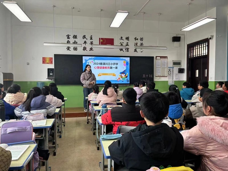 本网讯(余会丽)律回春晖渐,万象始更新。沐浴着春天的阳光,我们又迎来了新的学期。为做好学生开学心理调适工作,守护学生身心健康,提升学生的心理健康水平,以饱满状态回归校园,以积极心态面对学习与生活,助力学生向美好新学期出发,潢川三小阳光驿站根据本校孩子的身心特点,精心策划、用心准备,3月1日下午,学校组织全校各班上了一节春季开学“心理健康教育”第一课。鼓励学生多多运动,敞开心扉,增进与他人交流,以阳光心态去面对压力,将压力转化为前进的动力。开学第一课助力学生以稳定的情绪、乐观的心态开启新学期。阳光驿站全体成员深入班级保障各班心理健康教育第一课高质量开展。
