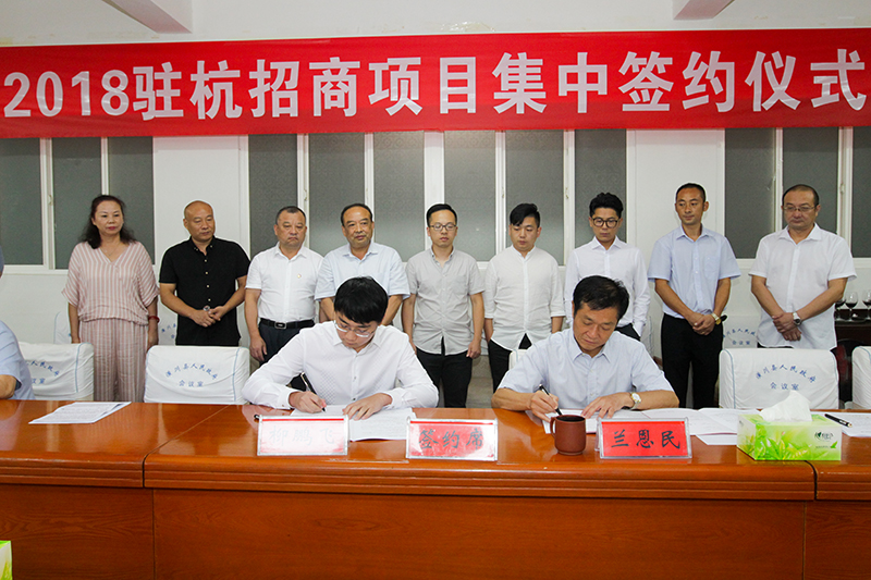 潢川网讯 8月17日上午,2018驻杭招商项目集中签约仪式在县政府三楼会议室举行,浙江服装产业园项目、鑫五金项目、博杰环保项目负责人,县领导兰恩民、刘玉峰、李浩、张健、付法璟出席签约仪式,相关职能部门、乡镇的主要负责人参加签约仪式。