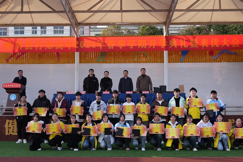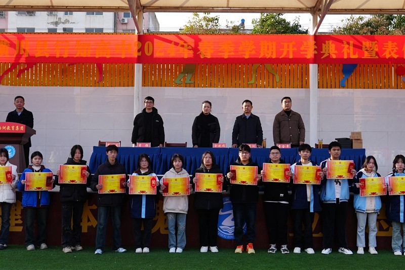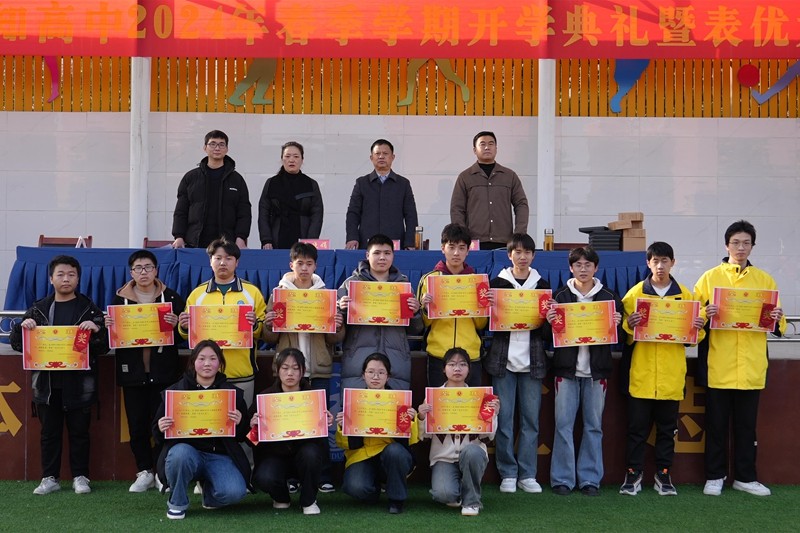 紧接着,高中教务处曾主任宣读2023-2024学年度上期期末学习标兵、进步之星表彰名单,政教处曹主任宣读2023-2024学年度上期期末三好学生、优秀学生干部、优秀寝室长表彰名单。学校领导为学习标兵、进步之星获奖学生颁发奖状和奖金,为三好学生、优秀班干部、优秀寝室长颁发奖状和奖品。