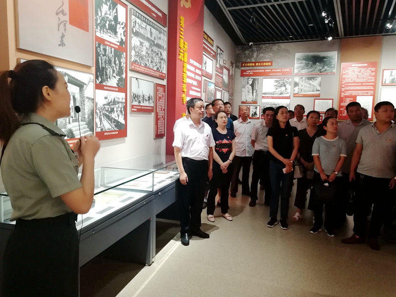 潢川网讯 2018年8月18日,白店乡全体班子成员、各村支部书记、机关党员、相关站所负责人和支部书记,在乡党委书记徐晶带领下,来到信阳市鄂豫皖革命纪念馆“不忘初心 牢记使命”主题教育展馆,开展“不忘初心 牢记使命”红色主题党日活动。