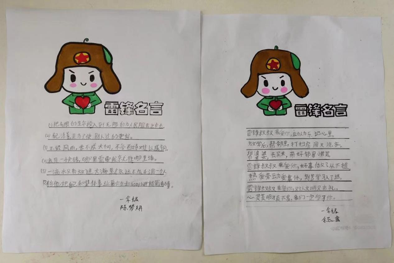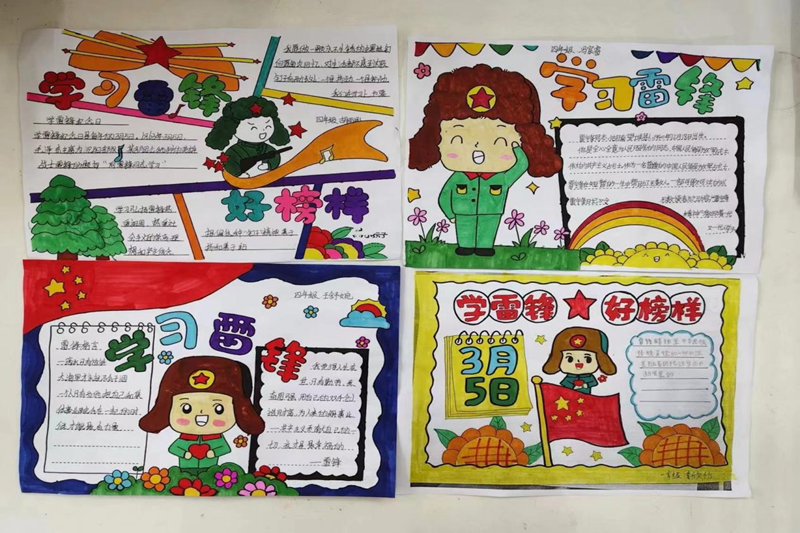 活动中,同学们通过收集雷锋的生平事迹、雷锋故事、雷锋名言警句等资料,用书写、手抄报、作文等形式弘扬雷锋精神,把对雷锋同志的崇敬和怀念之情深深融入到一幅幅作品之中。