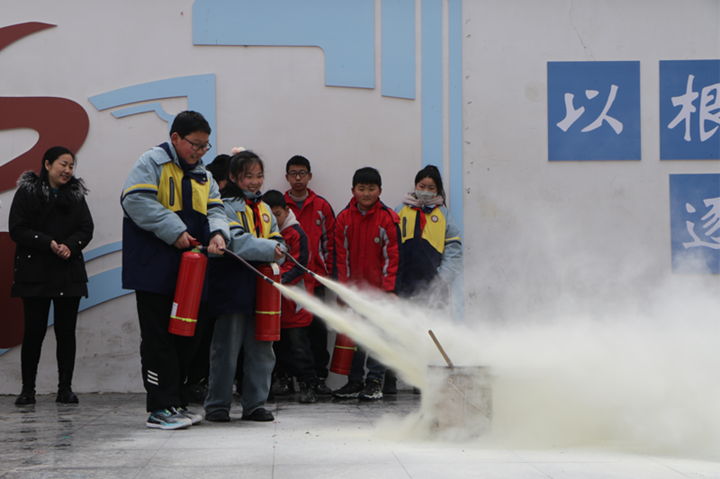 同时,学校准备了2个燃火盆,6支灭火器,何建利主任为师生现场详细讲解灭火器的使用方法及注意事项,并指导师生进行灭火演示。学校教职工进行实地灭火演练,再选派多名学生进行“灭火器”使用实操,并谈感想。