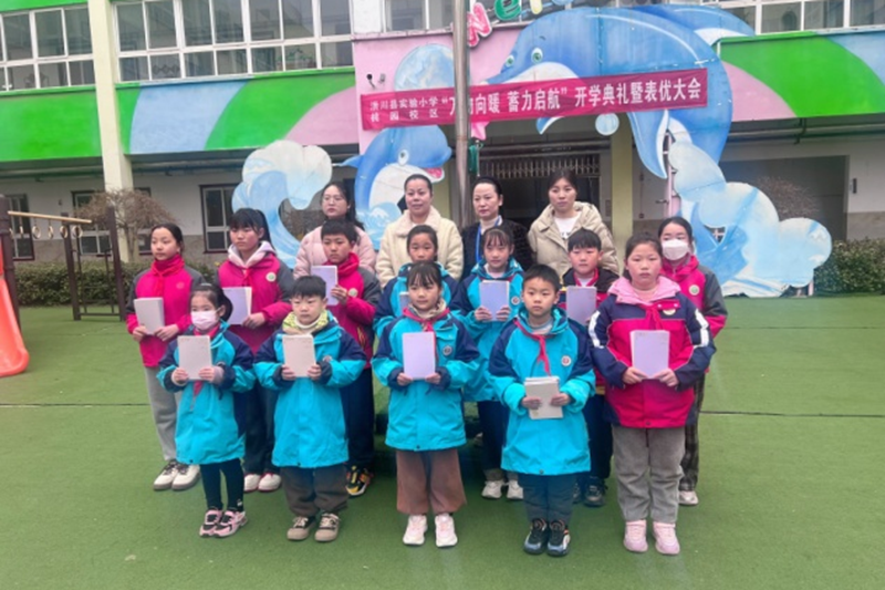 本网讯(刘玉 孟欣) 兔奔前程去,龙迎暖春来,迎着初春的薄雾,怀着激动的心情,3月4日上午,潢川县实验小学教育集团桃园校区举行以“万物向暖 蓄力启航”为主题的开学典礼暨表优大会活动。龙行龘龘启新程 少年逐梦向未来,全体师生欢聚一堂,共同迎接新学期的到来。活动由大队辅导员刘玉主持。