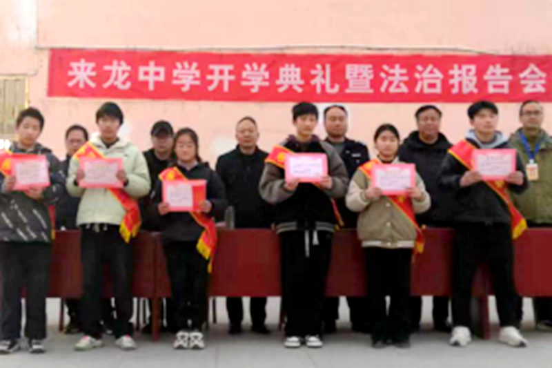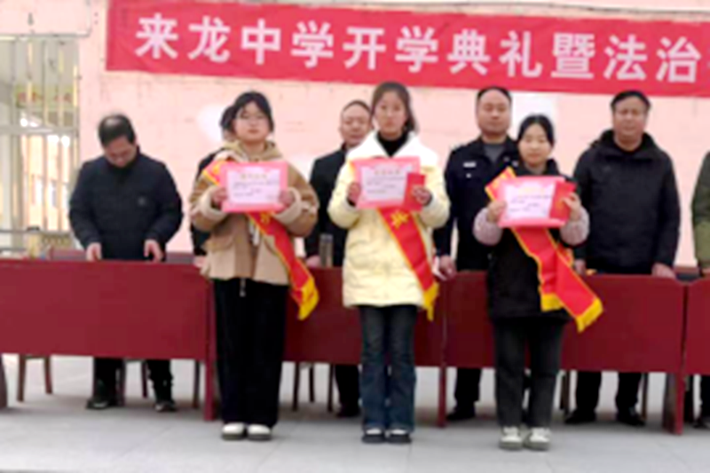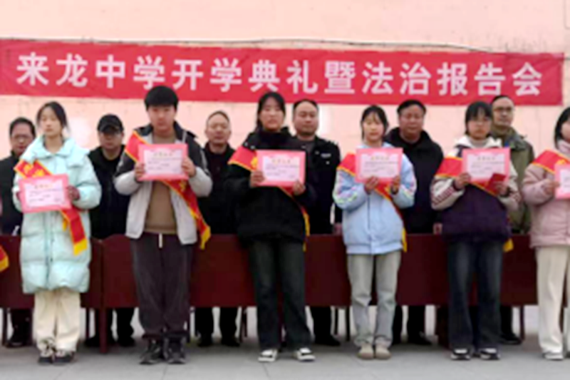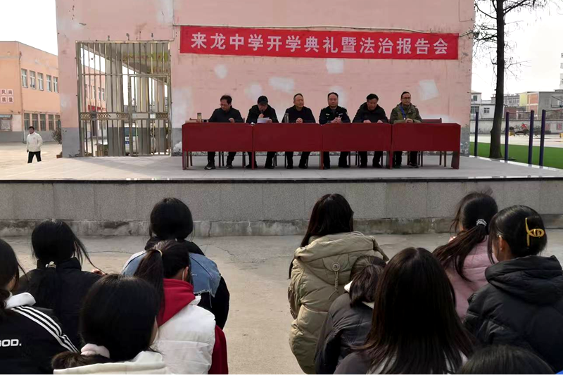 本网讯 (程治麟)3月7日下午,春风和煦,阳光明媚,潢川县来龙中学全体师生集合在东广场,举行隆重的开学典礼暨法治报告会,来龙乡副乡长、派出所所长苏楠应邀参加会议并做法治报告。支部委员、副校长、工会主席杨仕军主持会议。会议在雄壮的国歌声中拉开序幕,全体与会人员起来,奏唱国歌。