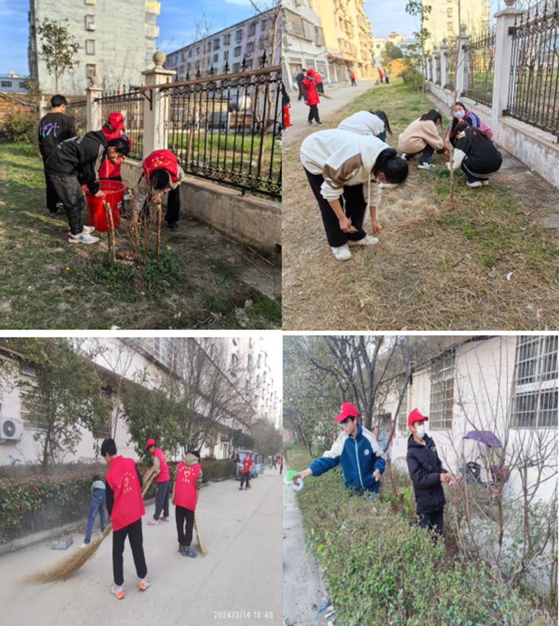 活动中,政教处进行了分工,明确了劳动任务,主要是打扫校园和生活区卫生、清理菜地的杂草、浇水和翻地,并对垃圾进行集中清理。同学们身穿红马甲、头戴小红帽,纷纷拿起清扫工具,发扬了无私奉献的雷锋精神,对公共区域清洁打扫,对草坪进行修剪,并清理了枯枝落叶、食品袋和杂草等各种垃圾,用实际行动努力营造“共建和谐校园”的良好氛围。