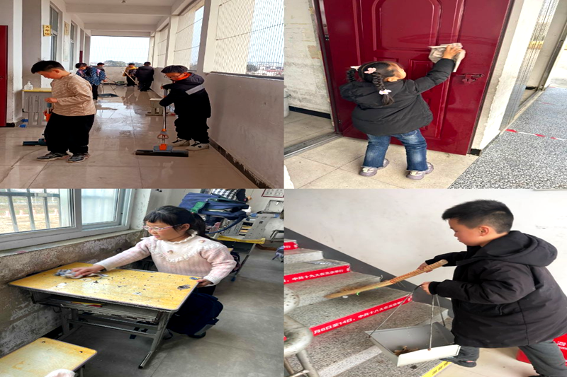 从“心”开始,从“细”着手,同学们在班主任老师的指导下,积极行动起来,扫除小纸片和杂物,清除墙角、窗户的灰尘,擦洗黑板、讲台等,确保教室内无卫生死角,做到窗明几净、物品摆放整齐。大家手中的清洁工具就像是魔法棒,加入汗水用心挥洒,教室每个角落都能看到劳动的身影,真是一派热火朝天的劳动景象。