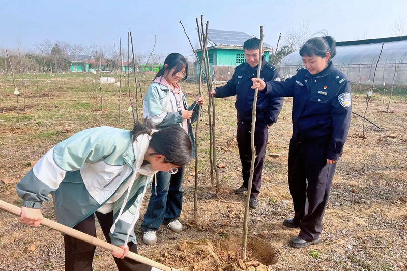 为了将植树节的理念落到实处,副校长宋长玲、法治副校长于琼琼、警务联络员邓志豪组织110护航班开展了“拥抱春天,‘植’此青绿”种植活动。大家挥汗如雨,共同种下了一棵棵象征希望的小树苗。在劳动过程中,每一位参与者都充分体验到了辛勤耕耘的乐趣以及爱护生态环境的重要性。植完树后,学生们纷纷拿起笔,在小纸片上写下自己的心愿与祝福,这些承载着孩子们纯真梦想和美好憧憬的纸片被小心翼翼地系在了他们亲手栽种的小树苗上。活动现场,学生们相互分享各自的心愿,有的希望建设更美好的绿色校园,有的期待自己像小树一样坚韧不拔,勇往直前。这一幕幕场景无不体现了学生们对人与自然和谐共生理念的深刻理解,以及他们对未来生活的无限向往和对环境保护的高度自觉。