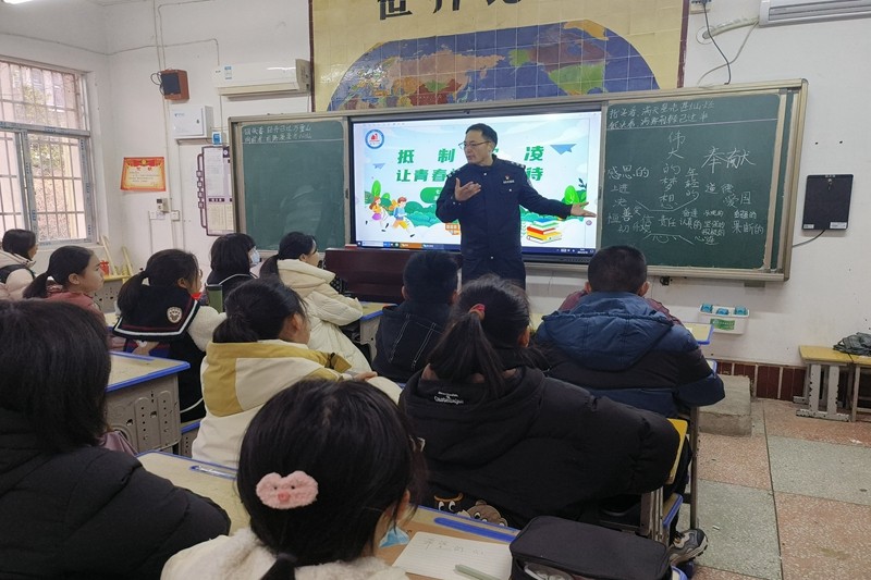 本网讯 为防止校园欺凌事件的发生,进一步构建平安和谐校园,提高学生的安全防范意识和自我保护能力。3月18日上午,潢川二中法治副校长胡继昀对七年级学生开展主题为《抵制欺凌,让青春被温暖以待》的法治安全教育活动。