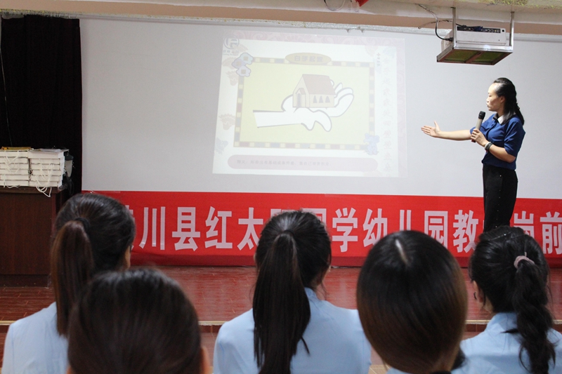 潢川网8月25日讯(阚燕)为提高教师的专业理论知识和实践能力,打造自主学习和发展的教师队伍,来自香港群峰忠国教育集团高级讲师谢小娜老师在8月24日为红太阳国学幼儿园全体教师进行了“新学期岗前教学学习交流和培训”。本次活动的主持人是由我园学习力强的黄子琪老师担任。