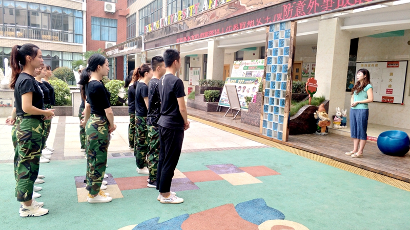 此次训练的主题是“训练一次激活一生”。首批参与此次军训活动的人员为园内行政员工和教研组长。军训内容主要包括稍息、立正、正步走、军姿、敬礼及合作体能训练等内容。军训期间,由经过专业训练的教练员任总教官,要求所有参训人员认真参与、严守纪律、刻苦训练,真正做到“雷厉风行,听从指挥”的总体要求,充分发扬了不怕苦、不怕累的优良传统。